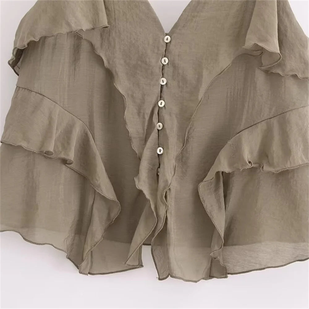 Blusa Feminina Alcinha com Babado Moderna Fashion