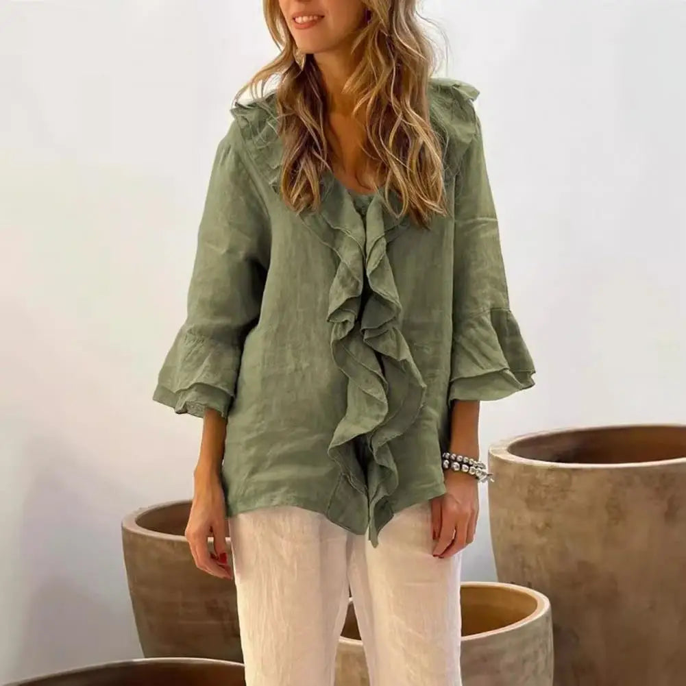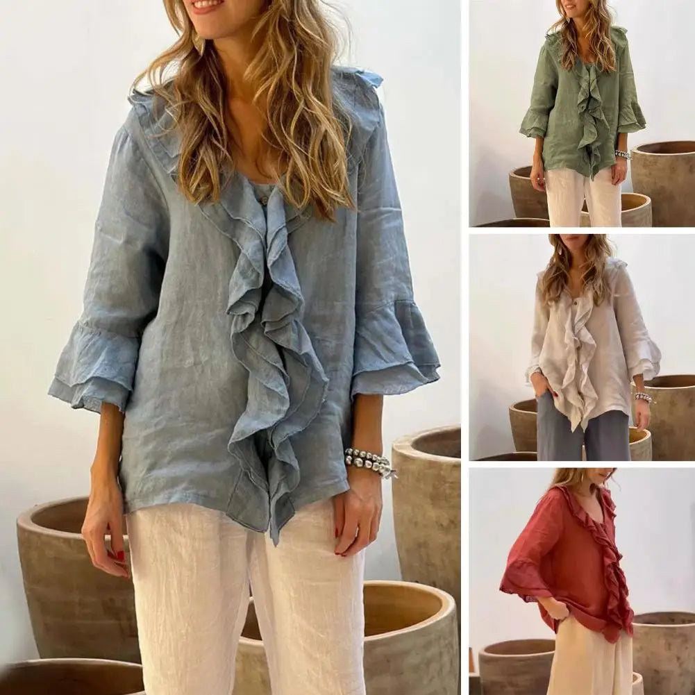 Blusa Feminina Manga 3/4 com Babados Moderna Brisa