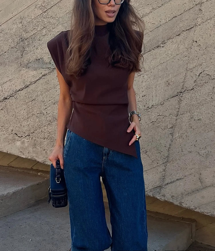 A Blusa Feminina Moderna Antonela é a escolha perfeita para mulheres que buscam um visual elegante, moderno e cheio de personalidade. Com design inspirado na tendência muscle tee, essa blusa apresenta mangas estruturadas, ombros marcados e um corte assimétrico, que adiciona movimento e originalidade ao look.
