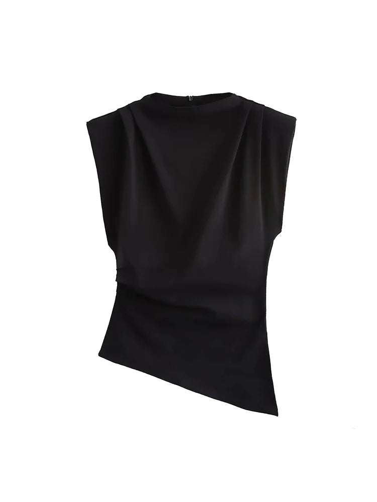 Blusa Feminina Muscle Manga Curta Corte Assimétrico Moderna Antonela