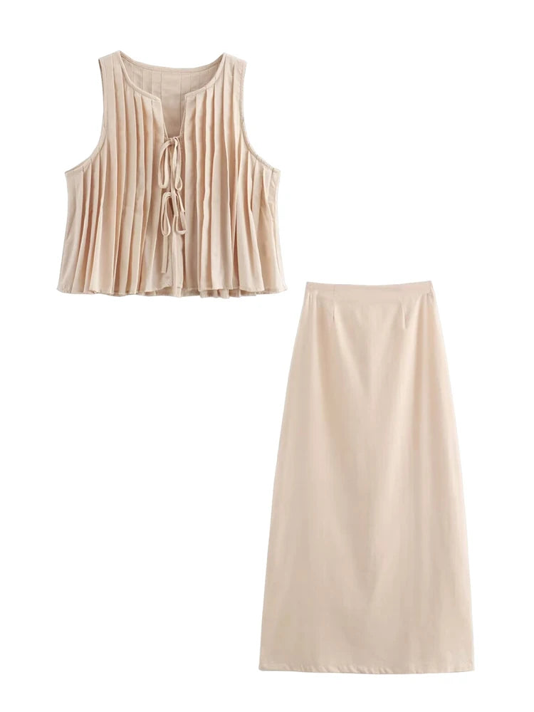O Conjunto Moderna Agatha é a combinação perfeita entre leveza e sofisticação, ideal para mulheres que buscam um visual refinado e confortável. Composto por uma blusa sem mangas com amarração frontal e babado na barra e uma saia longa de modelagem fluida, esse conjunto é perfeito para diferentes ocasiões, desde eventos casuais até momentos mais elegantes.