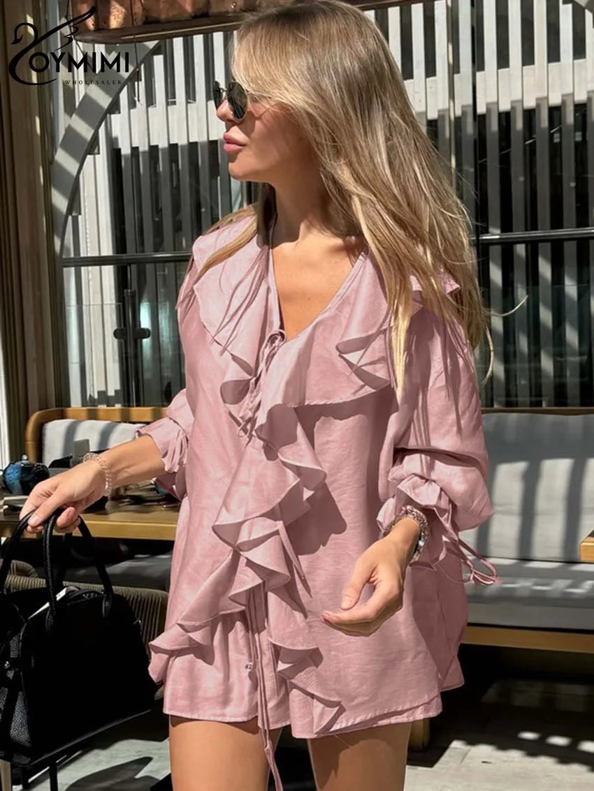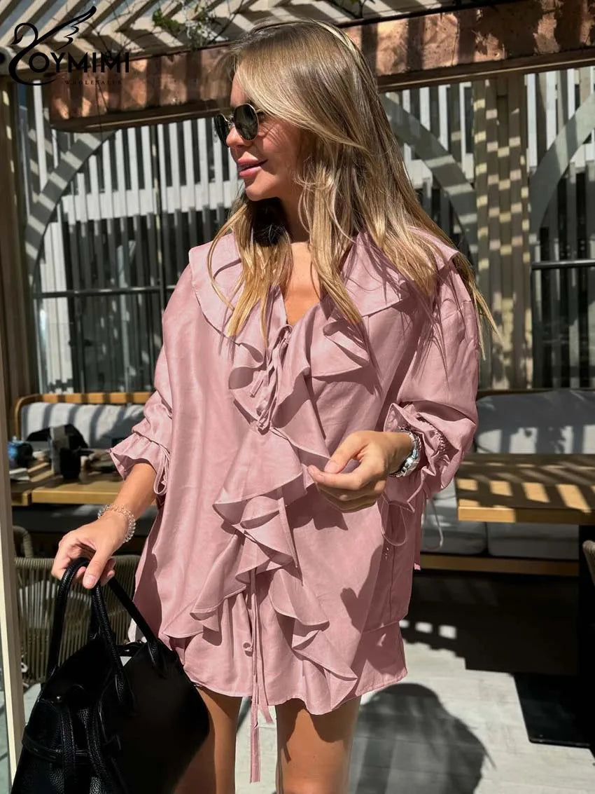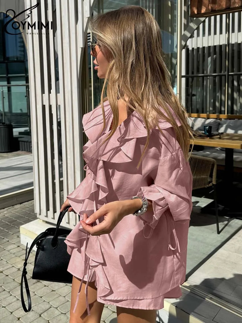 Conjunto Feminino Casual Short e Blusa com Babados Moderna Jade